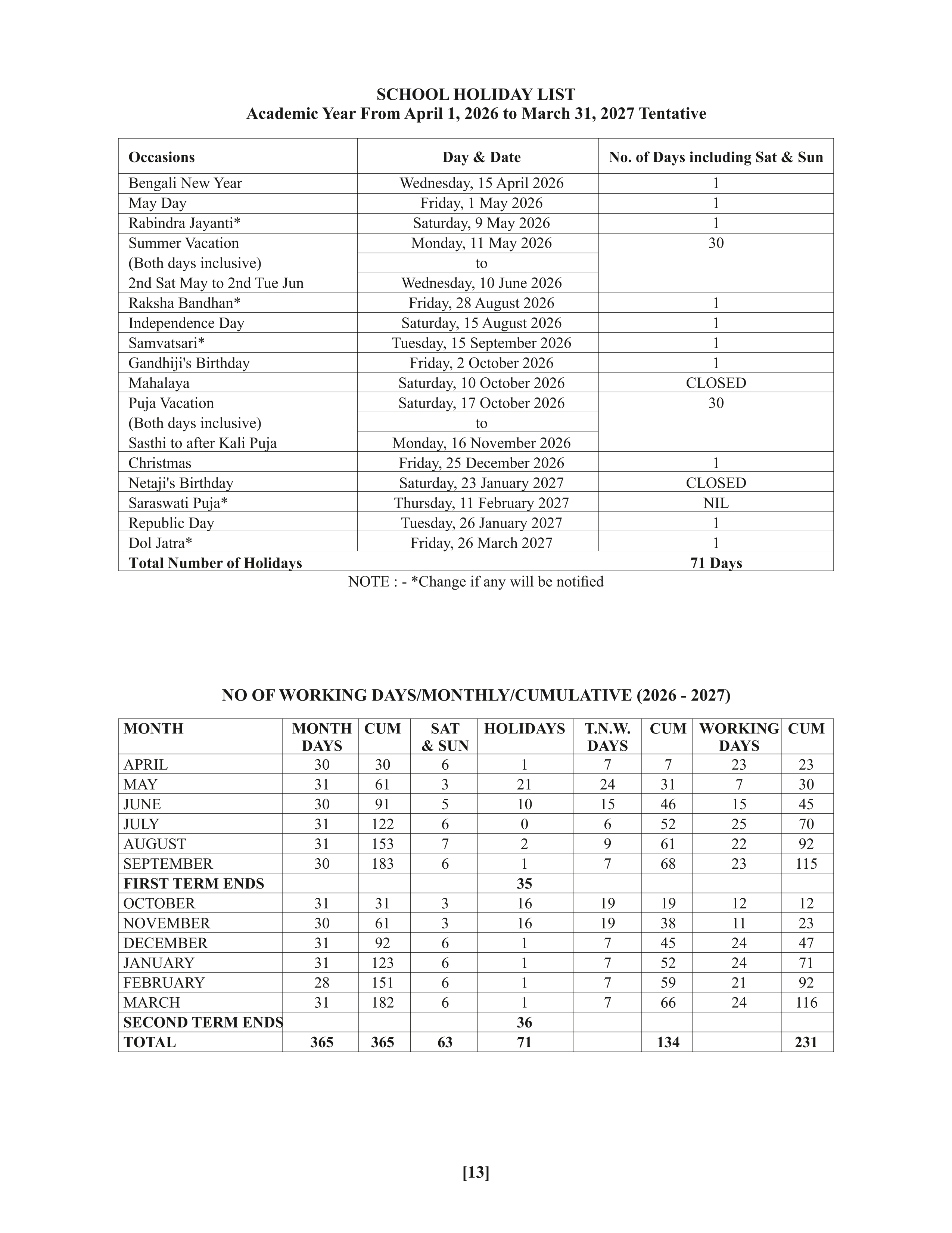 Right of admission to school reserved by the school.